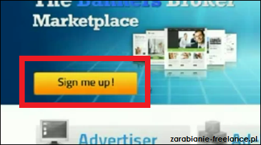Kiedy już wejdziemy w link naszego partnera do strony internetowej Banners Broker, wciskamy żółty button „Sign me up!”.